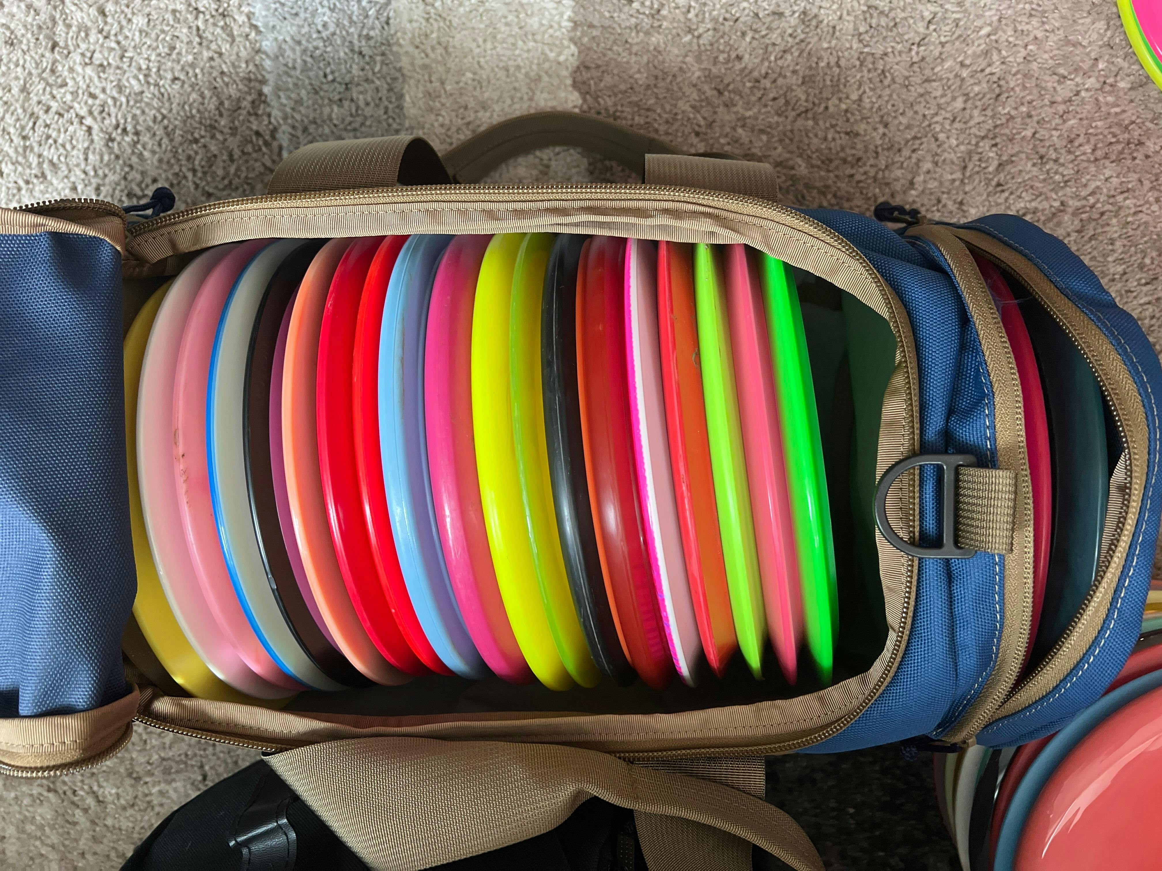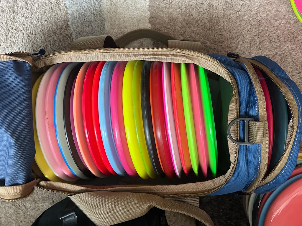 Being the exact same dimensions as the Toolbox, the Overnighter can double as a disc carrier. However, the Overnighter lacks the foam and plastic framing found in the Toolbox, so it won't provide the same level of padding. But when the time comes to store the Overnighter, it can be folded up or laid completely flat, taking up a minimal amount of storage space.