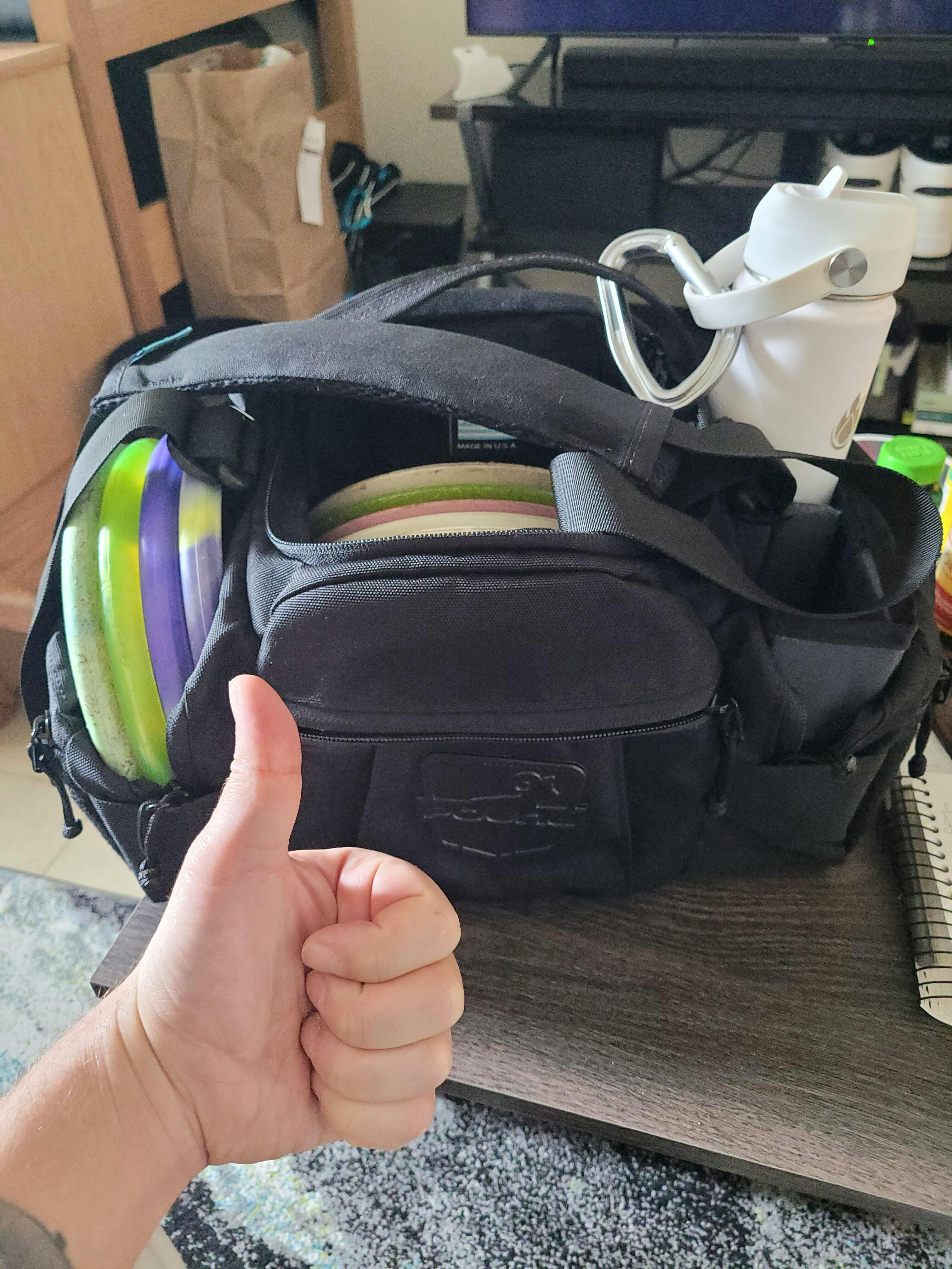 The Vagabond is our small shoulder bag that's versatile enough to serve the needs of avid disc golfers or beginners alike, as a travel companion or just for quick rounds.